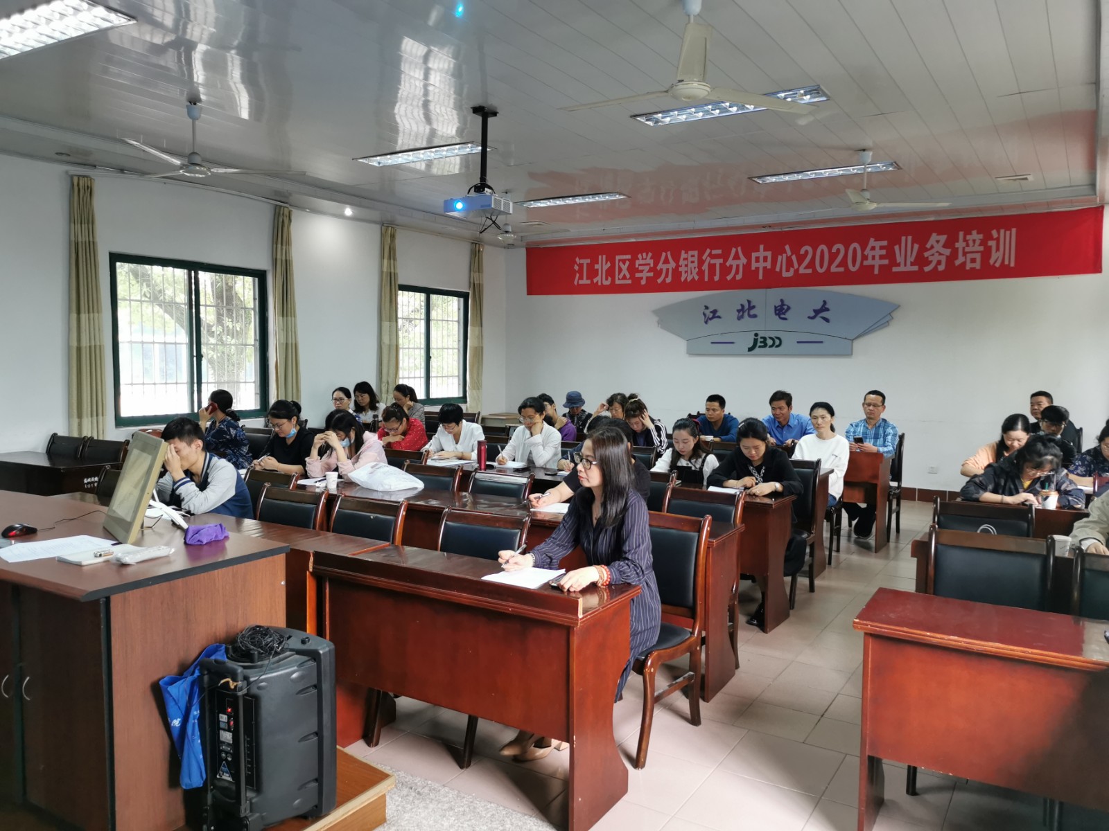 2020年9月24日上午,由江北区社区教育学院举办、慈城成校承办的江北区学分分行分中心2020年业务培训在慈城成校双向视频教室举行。