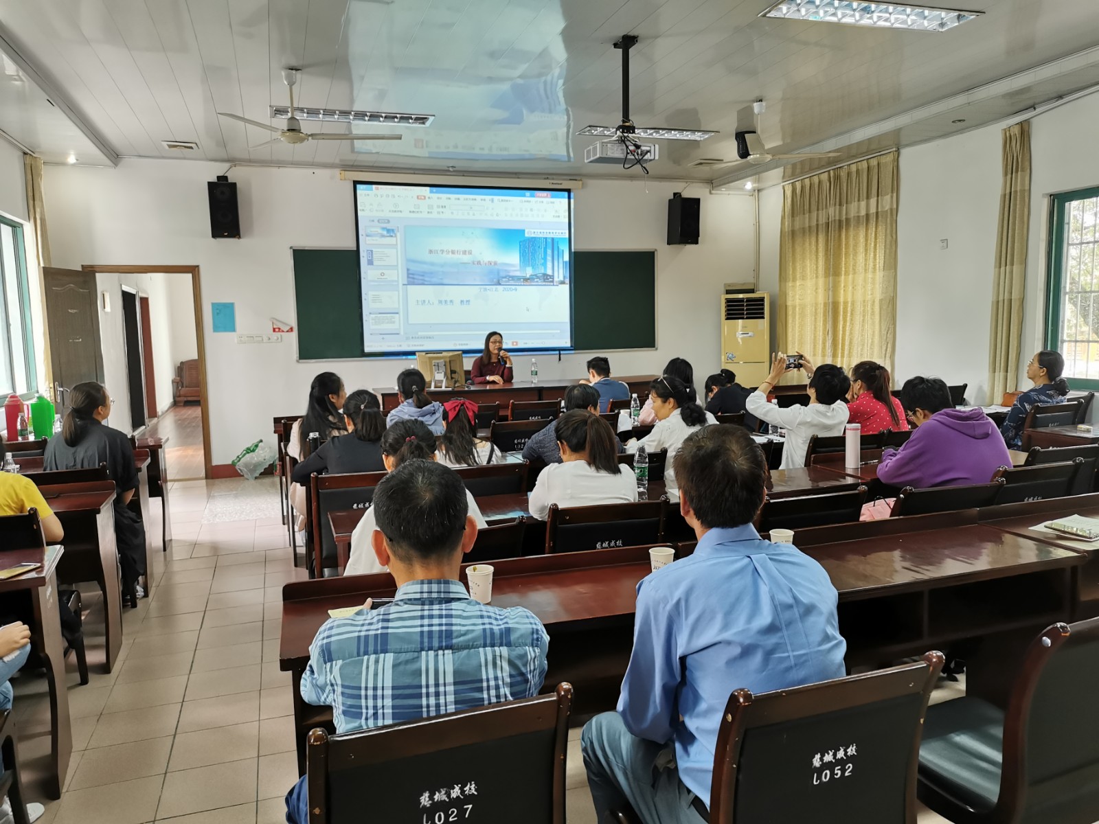 业务培训分两个部分进行。第一部分是学分银行基础,由慈城成校刘建国、陈静两位老师介绍学分银行网站的使用以及数据的采集。第二部分是学分银行管理、考核的相关要求,区社区教育学院特别邀请省学分银行专家周美秀教授主讲。周教授以《浙江省学分银行建设——实践与探索》为题,向大家介绍了学分银行的意义及我省学分银行建设的历程,并对学分银行的考核要求进行了说明。