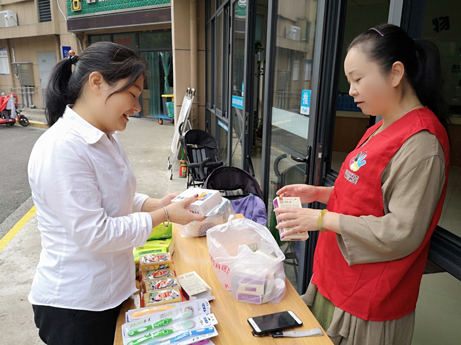 为让更多居民了解分类、主动分类,9月21日上午,长山社区分别在山清轩、水木轩两个小区开展了“有害换有爱”有害垃圾兑换活动。