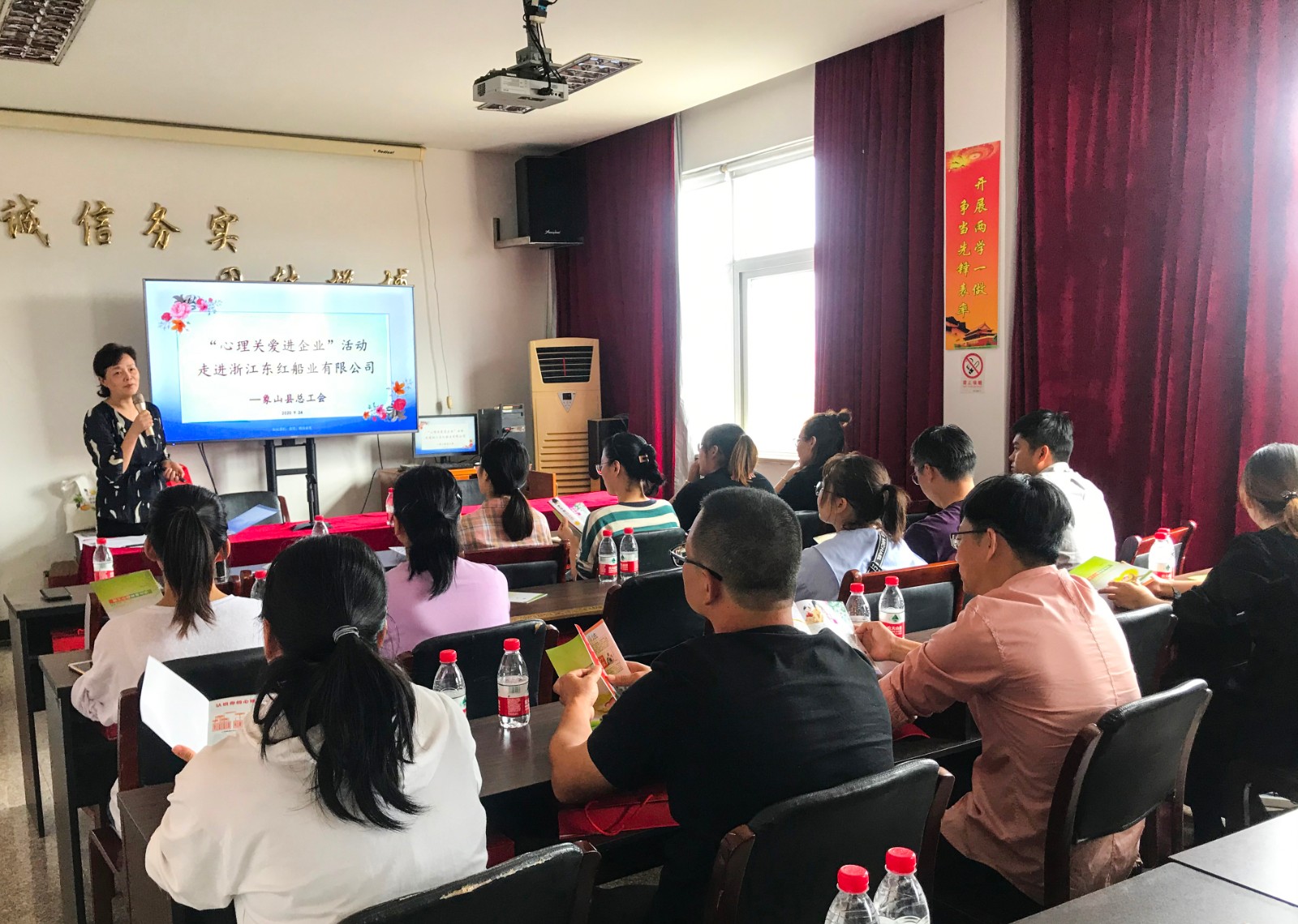 9月24日下午,“心理关爱进企业”知识系列讲座走进了位于鹤浦镇的浙江东红船业有限公司,共有40余名企业职工参加了本次活动。