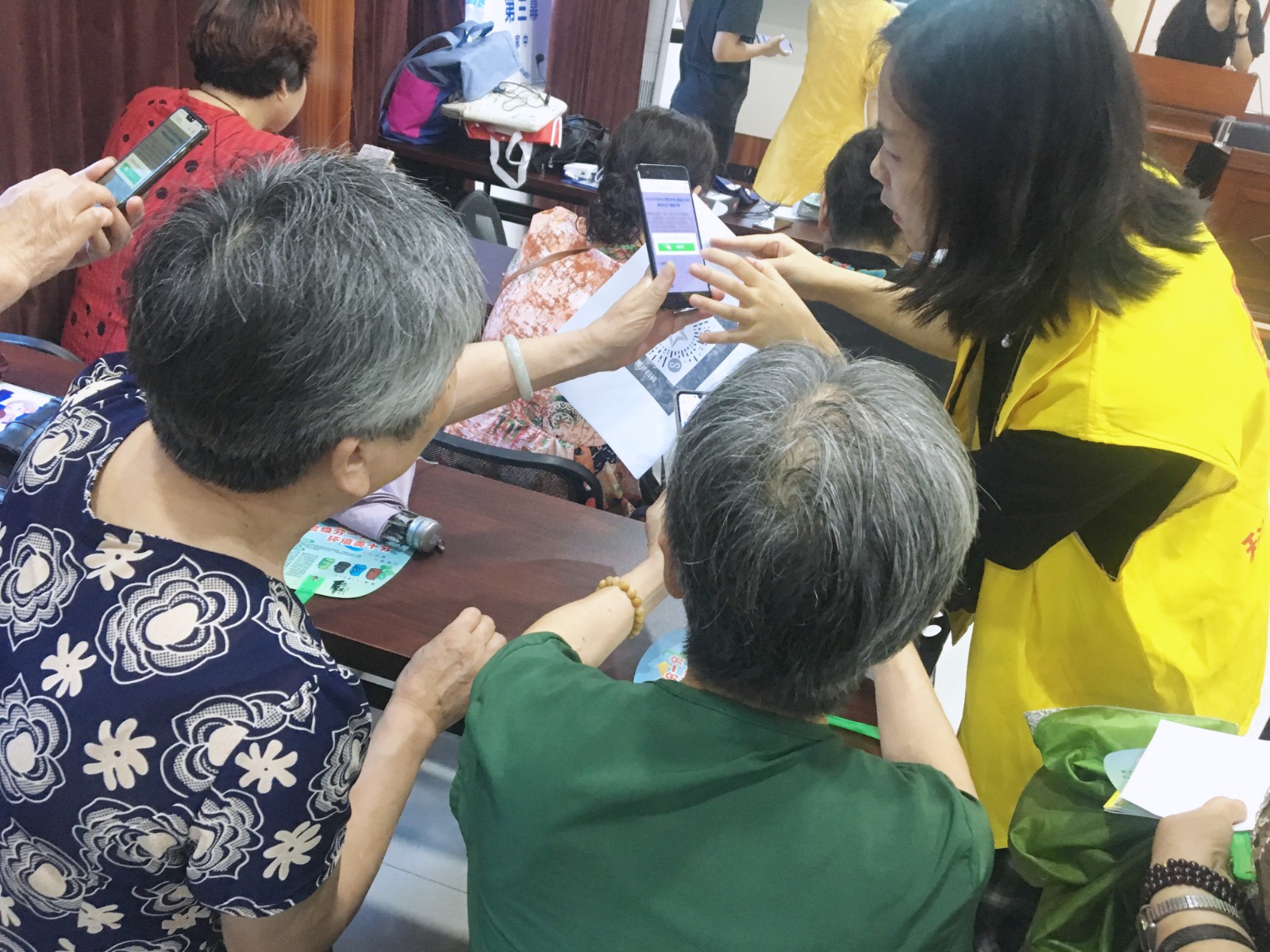 此外,宁波市计算机学会科普团的志愿者们,通过手把手教学的方式,教大家辨认正规的智能应用,学习更好地使用微信,并通过微信问卷调研,了解目前社区中老年群体对智能应用的认知和掌握程度。