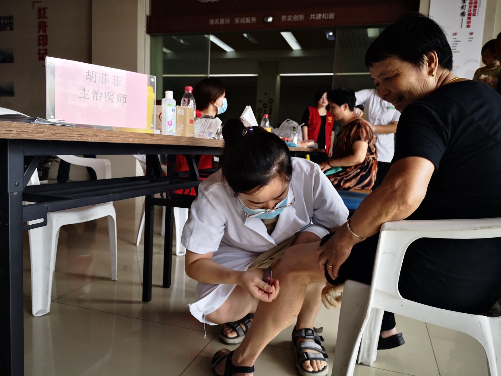 活动现场,很多肩颈、腰腿不好的老年朋友现场体验了针灸、拔罐等理疗手法,“最近天气不好,这肩膀酸得很,医生给我拔个罐、出出痧,感觉轻松多了。”前来体验的乐阿姨笑着说,阿姨体验完理疗手法,移步到把脉、问诊区,由刘春叶副主任医生为其把脉,通过“望”、“闻”、“问”、“切”,刘医生根据乐阿姨的身体情况为其开具了中药处方。现场还有专门的医生为大家科普中药材知识、车前子、金樱子、王蝴蝶这些平时只能在中药单里看到的东西,居民们在现场都触摸、识别。