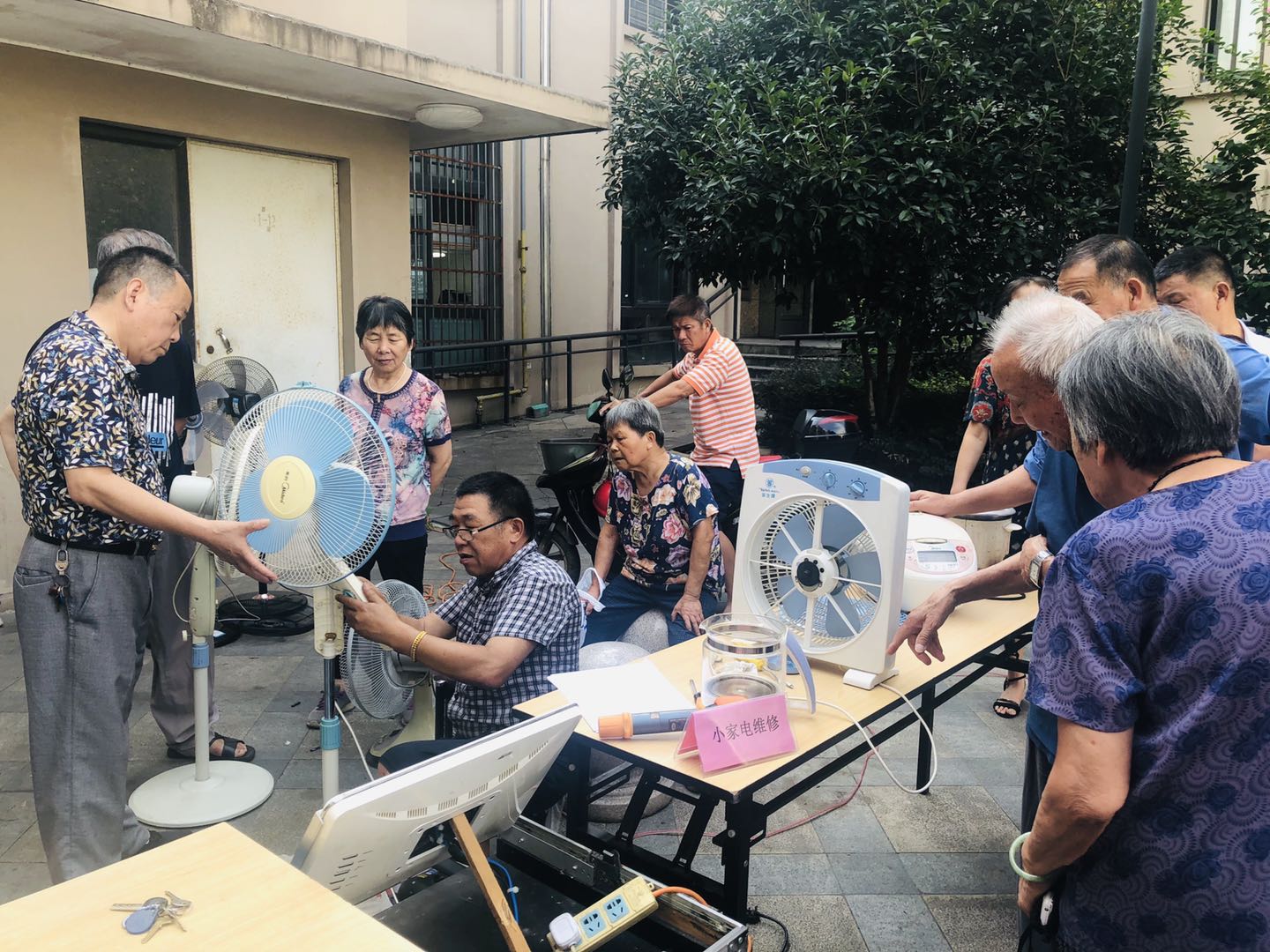 炎热的天气挡不住居民的热情,现场设立了公益剪发、血压测量、小家电维修、地毯清洗等便民服务摊位,还有对于平安镇海和垃圾分类知识的宣传,人头攒动,居民积极参与,志愿者们的爱心、细心、贴心服务,引导居民融入社区大家庭,让居民不出家门,就能得到便利服务,为社区增添了新活力。