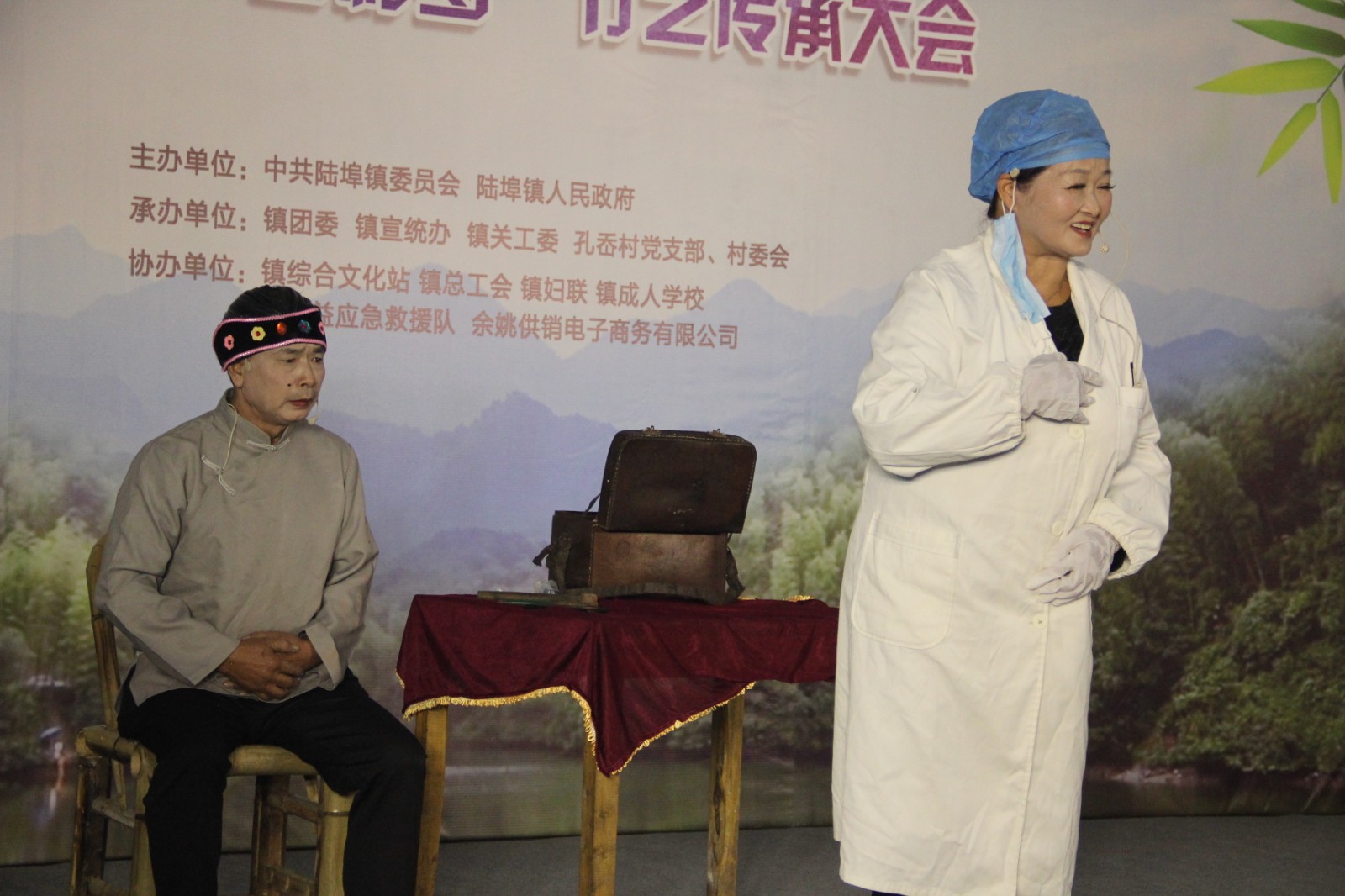 主会场首先由孔岙村党支部书记徐建青发言,镇宣统委员罗怀青致辞,镇党委副书记沈学键宣布活动开幕。主会场中的文艺演出精彩纷呈:女声独唱《我爱你,中国》,配乐诗朗诵《岙之怀》,小品《婆婆去拔牙》……其中陆埠成校旗袍队为大家带来的旗袍秀《江南情》更是获得的观众们的阵阵掌声,她们娟娟而行,举手投足尽显女性优雅高贵,呈现妩媚柔和的风采。文艺演出间隙还穿插了爱心义卖。本次活动设有2轮义拍,共拍出4件(套)竹制品,在座观众热情十分高涨,一次又一次加价、竞价,竹制品受到了大家的欢迎。
