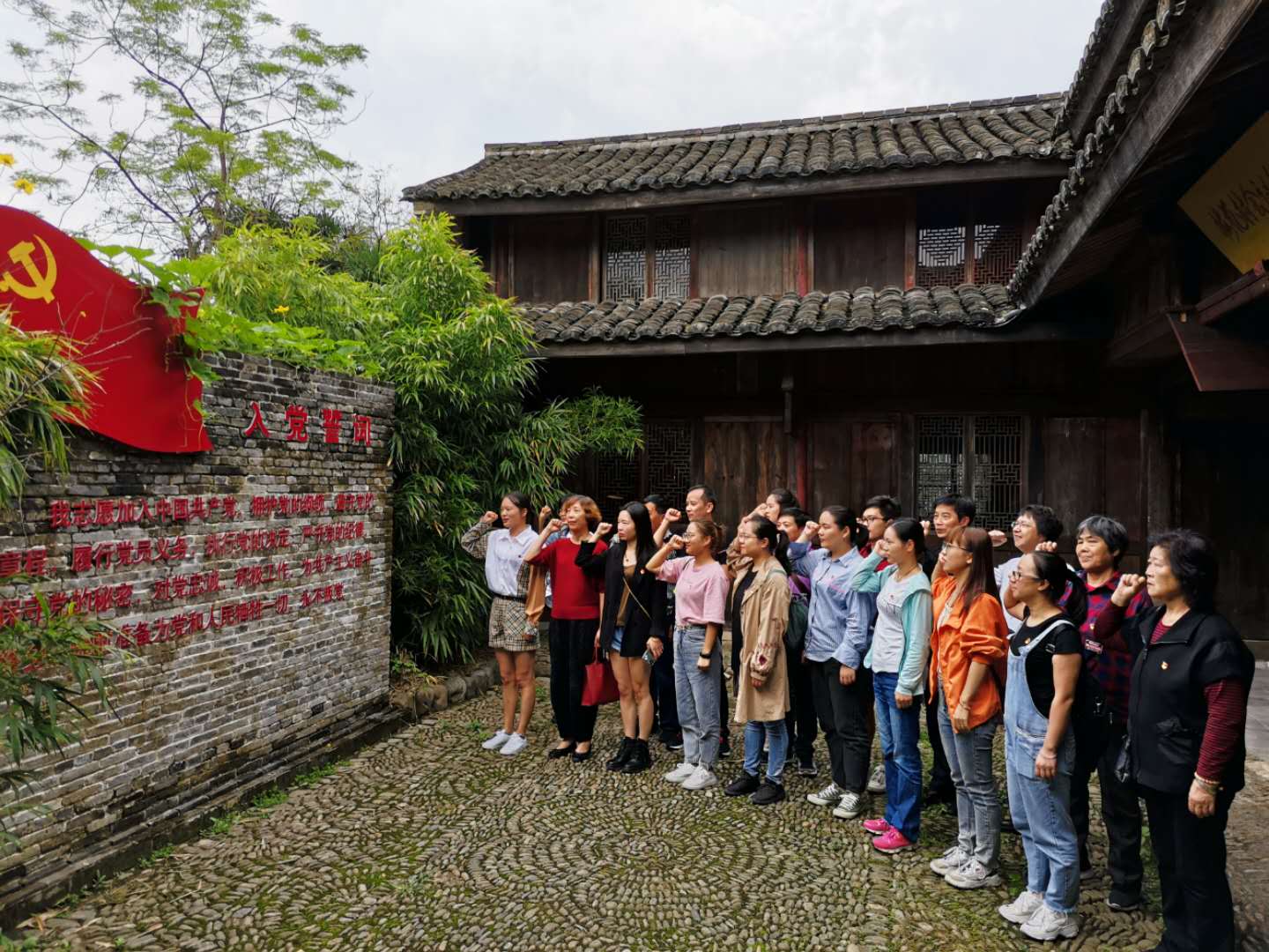 9月26日,新晨社区邀请了辖区内的党员和业委会代表,一同赴宁海的红色教育基地石头村和梅花村参观学习。当天一大早,大家就在社区门口集合乘坐着大巴车向着目的地出发,在大家的欢声笑语中,很快我们就来到了此次活动的第一站——石头村。石头村顾名思议此村是以石头为特色的。蜿蜒的石头小路,震撼的石头宴满汉全席。整个村庄保留了新中国成立后早期的建筑风格,大家在此忆苦思甜,纷纷开始还念以前小时候的日子。之后我们来到了梅花村会议遗址,参观了当时的会议遗址,并且面对党旗进行了庄严的宣誓。这次党员活动很好地调动了大家的积极性,重走红色基地,领悟爱国教育,传承了党优良作风。