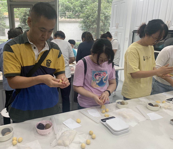 平日里企业技术人员放下了自己擅长的专业岗位来到烘焙操作台前,揉面粉、称馅料、包月饼......忙得不亦乐乎,虽然有点手忙脚乱但也从容不迫。“长这么大第一次做月饼,原来小小一个月饼要这么多道工序,以后吃月饼会更加珍惜它了,把这个造出来太来之不易了”首次做上月饼的新的社会阶层人士徐斌感慨道。