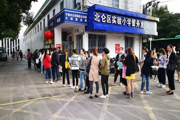 早上7点半的时候,大碶成人学校的所有老师已经在校门口严阵以待,袁老师站在校门口第一个位置负责对进校培训的保健医生们微信扫健康码、测体温;方老师负责对保健医生上交的培训信息表、健康申报表进行整理收集;傅老师负责保健医生的签到、收上岗证书。