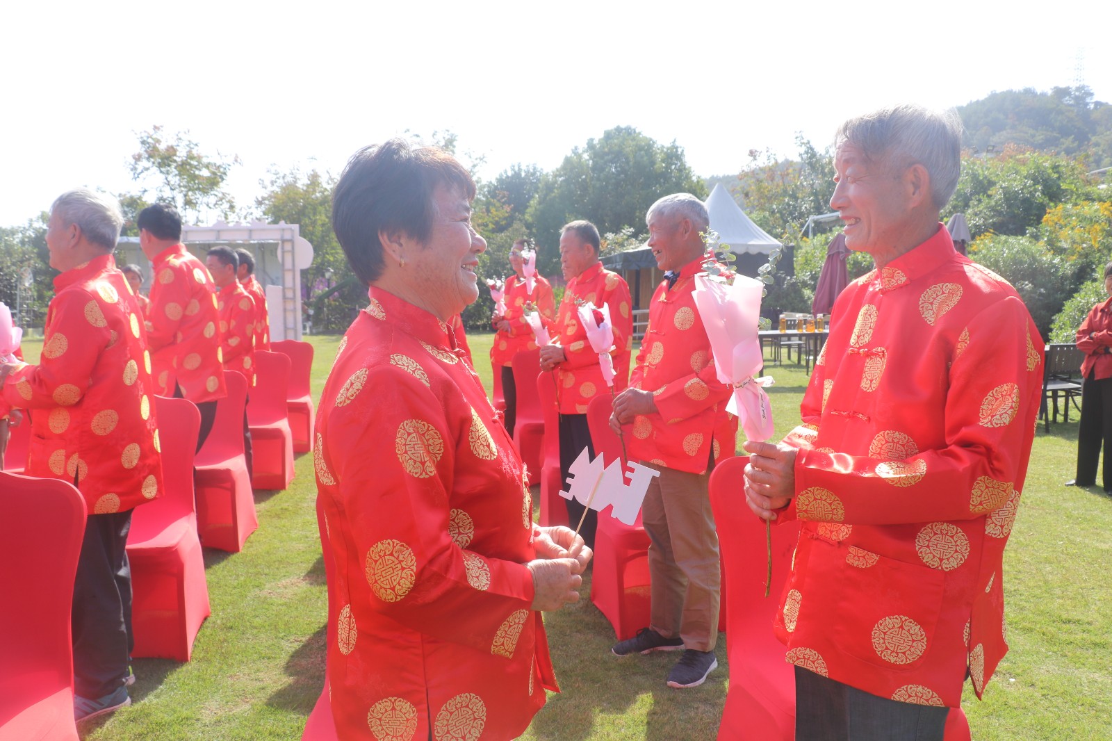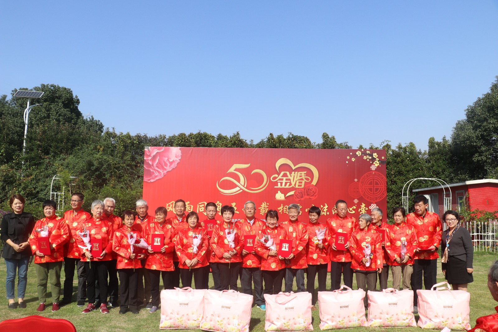 金风飘菊蕊,佳节又重阳。为庆祝重阳佳节、营造节日气氛,宣传中华民族“敬老、尊老、爱老”传统美德,增加社区老人晚年幸福感。10月23日下午,枫林社区在宁波丽盛玫瑰庄园举办“风雨同舟五十载 相濡以沫两心牵”金婚重阳活动。此次活动由辖区共建单位宁波佳利金属有限公司、宁波和迪机械有限公司联合赞助承办。来自辖区各村25对金婚夫妻欢聚一堂,重温爱情的甜蜜。