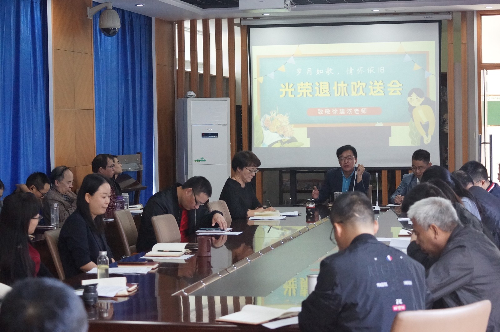 徐建浓老师发言表示:“离别之际,我由衷地感谢学校的培养和关怀,感谢同事的关心和照顾,退休不是人生的终点,它是另一个起点,我会带着大家的鼓舞和温暖开启人生第二个春秋,也希望在座的老师珍惜这份事业,努力提升自我价值,工作让人美丽。”