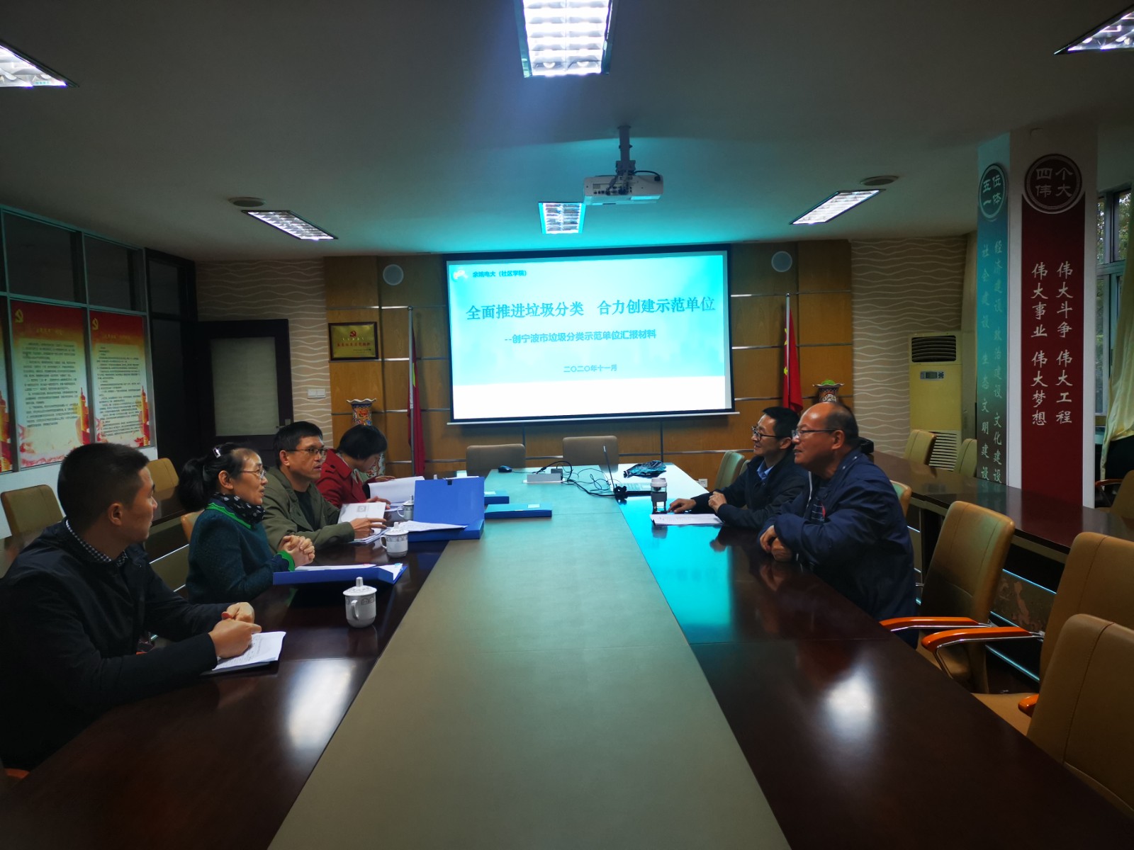 余姚电大(社区学院)迎来宁波市生活垃圾分类示范单位现场评估