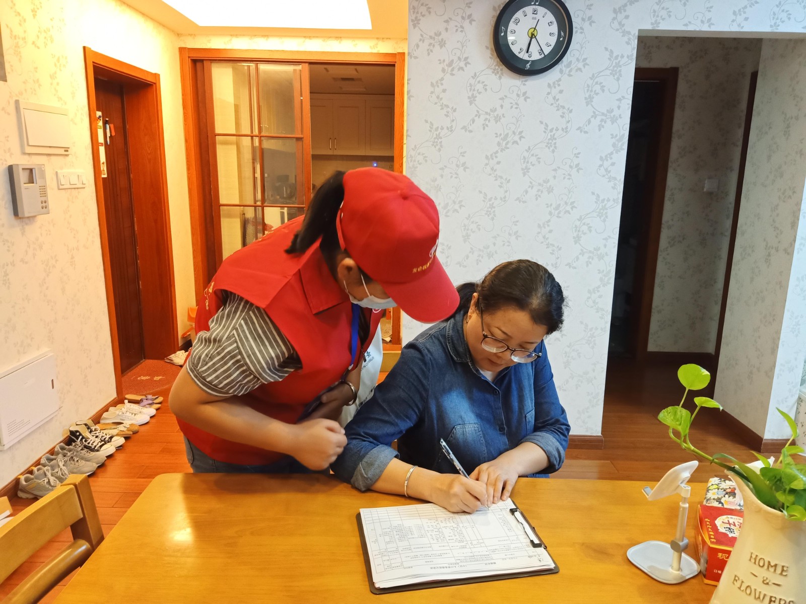 于是,每位指导员又“晋升”为“片区普查总管”,除了帮助各普查员熟悉业务、迅速成长,更调动起“非专业普查员”的积极性,共同投身到“大国点名”的光荣事业中。这些“触手”包括热心的党员、居民阿姨、志愿者,他们成为了横杨“七人普”的宣传急先锋,将“大国点名”的消息先一步撒入小区楼道、宿舍和商铺,其后更是在摸底、短表、长表等数次入户中在旁协助:亮党员身份、做思想工作,释居民疑惑;居民阿姨熟情况、擅方言,助力正确采集;志愿者协作好、毅力强,攻坚克难“蹲守”忙。“总管”们还发展了一支由企业宿舍管理员、公寓管理员、物业工作人员组成的“业余奇兵”队伍,为普查宿舍、公寓点乃至小区商铺“助攻”无数。