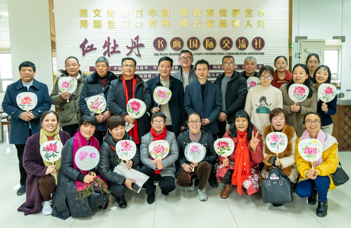 大家埋头作画,反复临摹,直到画得有模有样,得到姜院长的认可,才拿出团扇郑重地画下一片片娇嫩的牡丹花瓣。不知不觉间已近十一点了,学员们都陆续完成了画作,团扇上的牡丹或含苞待放,或纵情怒放,一时间教室似乎变成了牡丹花园,似有幽香扑面而来。学员们拿着团扇合影留念,脸上洋溢着幸福的笑容。大家纷纷表示,回去后要多多练习,有机会还想来牡丹学院切磋学习。