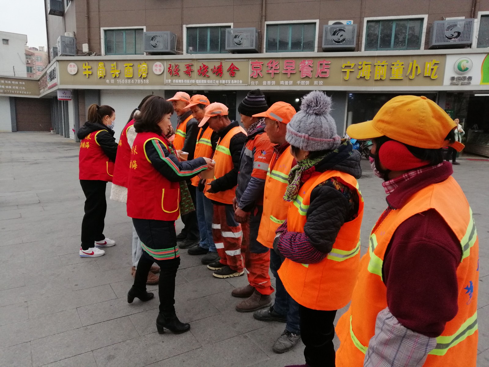 早上8点半,盛家社区党总支班子成员为环卫工人送上节日的祝福。他们不畏风雨,为城市的清洁,为社会的文明付出自己的辛劳。他们干着平凡的工作,任劳任怨,那抹橙色是城市里一道亮丽的风景线。一碗腊八粥,盛满冬日暖阳,将最温暖的祝福送给“城市美容师”。