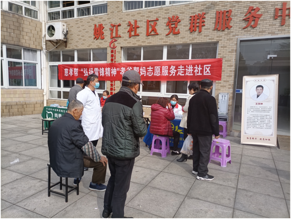 “3.5”学雷锋日,姚江社区慈孝帮“弘扬雷锋精神”孝爸帮妈志愿服务队到社区开展学雷锋志愿服务活动。为居民带来了口腔检查、眼科检查、理发、针灸、理疗按摩等项目,通过学雷锋志愿服务活动,志愿者以平凡和朴实的行动,传承和发扬了雷锋精神,并赋予了雷锋精神以新的时代意义,为居民带来了实实在在的便利和温暖,为社会增添正能量。