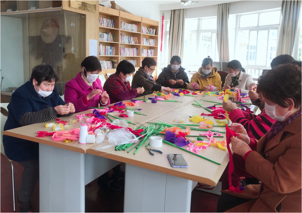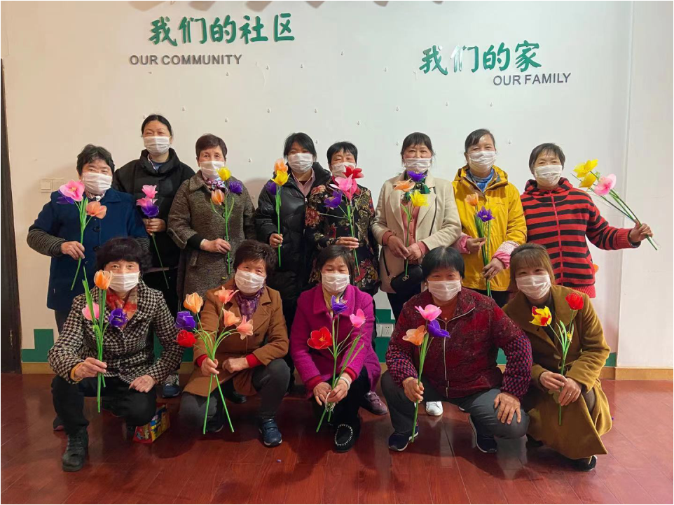 3月6日,为庆祝一年一度的“三八”国际妇女节,姚江社区开展了手工制作丝网花活动。