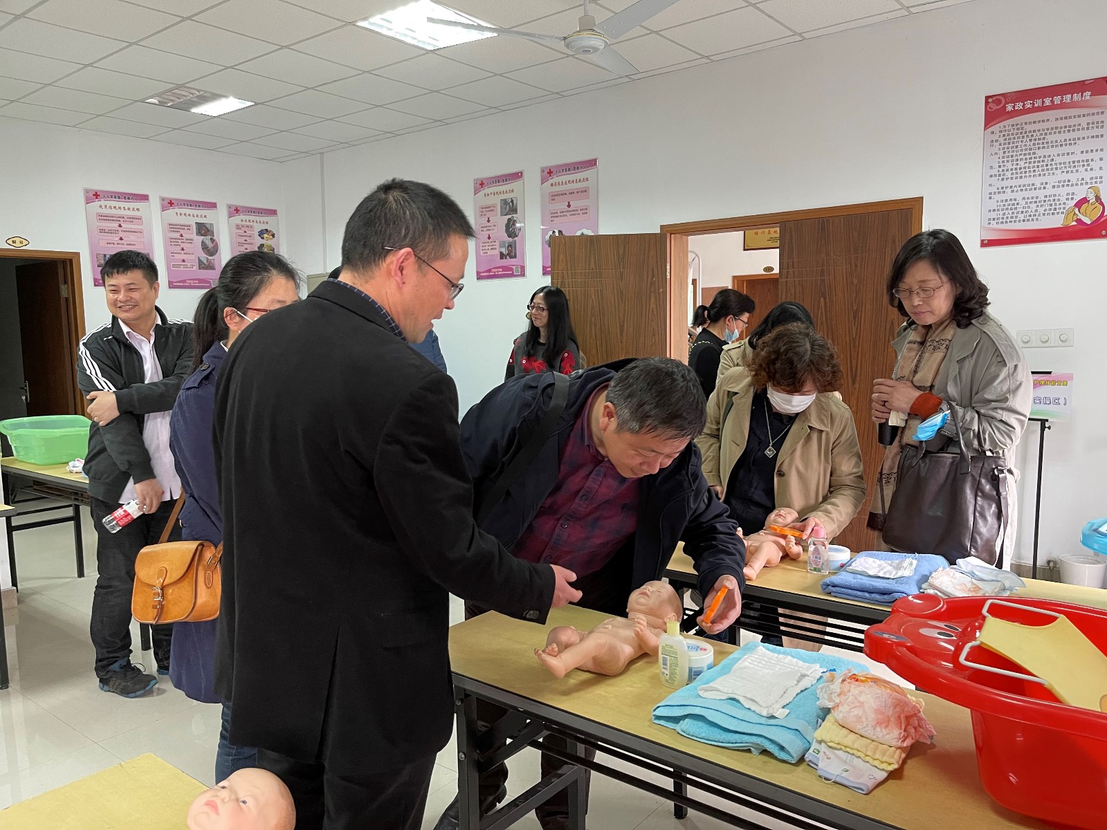 客人们先参观了学校的校园环境与整体布局,当来到家政服务实训室,对母婴护理器材产生了兴趣,有些老师还现场模拟演示了一番。接着观摩了老年大学烹饪班与戏曲班的课堂教学,对老师的专业素养与学员的认真好学态度给予赞赏。随后观看了CETV1播出过的采访视频:农村社区教育服务乡村振兴的澥浦做法。校长刘奇华以“项目创新引领社区教育品质化发展”为题作了汇报,着重介绍了“海田阿姨”家政服务培训品牌,以图文结合的形式从项目概况、成效、特色、理念、创新点等方面向大家阐释了“海田阿姨”的培育过程、推广应用效果和社会反响。
