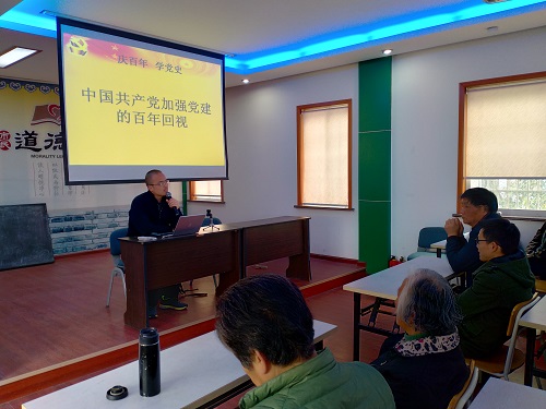 文竹社区邀请了来自宁波大学的郑善庆教授为广大党员和积极分子进行现场授课。郑教授分别从:老革命者口述调研、中共早期党建的几个特点、国民党党建上的“受挫”、抗战时期国共的合作与党争、1948年总统副总统选举与国民党的倒台等几方面向大家讲述了中国共产党的发展史。现场三十余名党员干部和群众共同深情回顾党的奋斗历史,热情讴歌党的光辉业绩,继承和发扬党的光荣传统和优良作风。