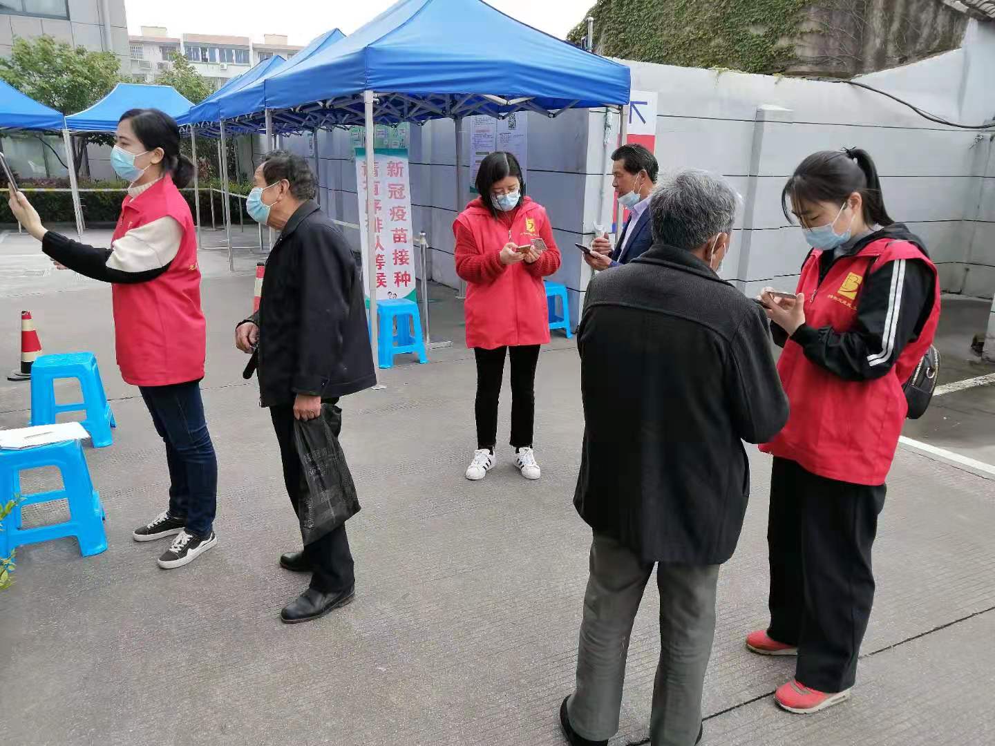 “请大家有序排队,准备好手机、身份证,并提前扫二维码预约登记”、“新冠疫苗的接种跟平时的接种是一样的,大家不用过于担心,只要注意观察和休息即可”。在每个接种日上午7:40分,志愿者们便有序地在扫码区、等待区、填表区、接种区、留观区等多个区域驻守,从早上到下午4点,放弃午休时间,有的驻守在岗位上,有的穿梭在队伍中,有的耐心询问接种群众近期的身体状况,有的耐心劝导不适合接种的群众,尽量把服务细化到每一个环节。虽然服务时间长、接种任务重,很多志愿者嗓子都哑了,依然耐心细致,现场秩序井然。刚接种好的周老伯说“我年纪大了,用的是老年手机,多亏了这些志愿者帮我们扫码预约,让我顺利完成疫苗接种”。白峰医院的史院长也对志愿者们的服务赞不绝口。