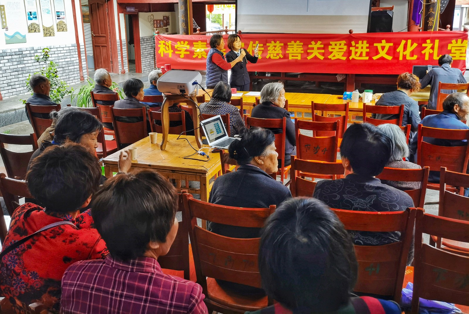 4月12日下午,象山县丹西街道成人学校联合民生银行、无忧花义工大队,在下沙村文化礼堂开展了科学素养宣传活动,来自该村60余名中老年人参加了此次活动。