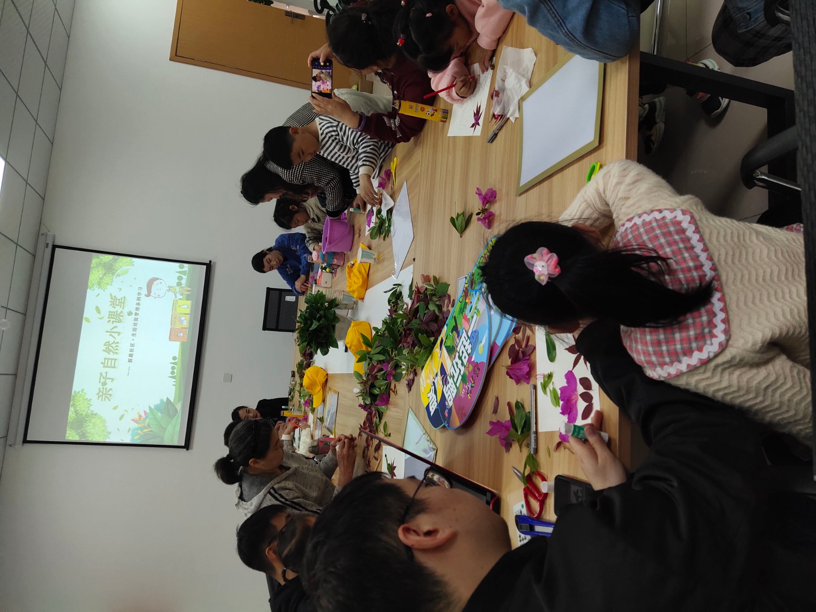 4月18日上午,新晨社区联合吾悦广场小区开展“亲子自然小课堂——新晨社区·生活垃圾管理条例学习”主题活动,和孩子们一起感受绿意,提高环保理念。社区工作者和物业管家带领小朋友和家长们在园区内捡拾白色垃圾,美化家园环境。而后在手工老师的指导下,小朋友们亲自动手用捡拾的花瓣落叶制作了各色各样的贴画作品,在动手的同时也实现了垃圾分类再回收。