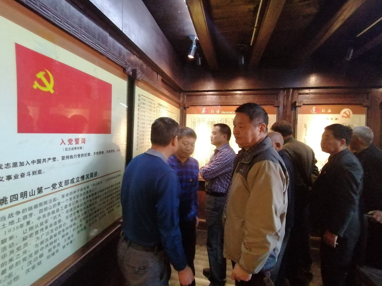 进入陵园,站在高耸入云的革命烈士纪念碑前,崇敬之情油然而生。全体党员面向烈士丰碑献花圈并三鞠躬,在鲜红的党旗下,庄严举起右手,重温入党誓词。在烈士纪念观里,党员们仔细参观每位烈士的生平事迹。四明山烈士陵园长眠着800余位在我国各个历史时期牺牲的革命烈士。除了文字、照片介绍外,还有部分实物和场景再现。一件件革命文物让党员们直观的受到红色教育。很多党员参观后表示,不少烈士牺牲时年纪都很轻,他们本应该有更好的明天,但他们为了心中的理想,为了民族复兴甘愿赴汤蹈火,这种精神不管在什么时候都不应该忘记。这次主题党日活动很有意义。让大家心灵受到洗涤,精神得到了提升。
