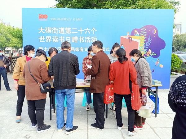 为迎接“世界读书日”,进一步丰富居民文化生活,4月17日上午,由北仑大碶街道办事处主办,街道文化站、街道图书馆、太白社区党群服务中心、太白社区文化加油站承办的“党徽闪耀·益暖太白”红色公益集市——大碶街道第二十六个世界读书日赠书活动暨太白社区第九届家庭文化节开幕式在东街岩河水上亭举行。