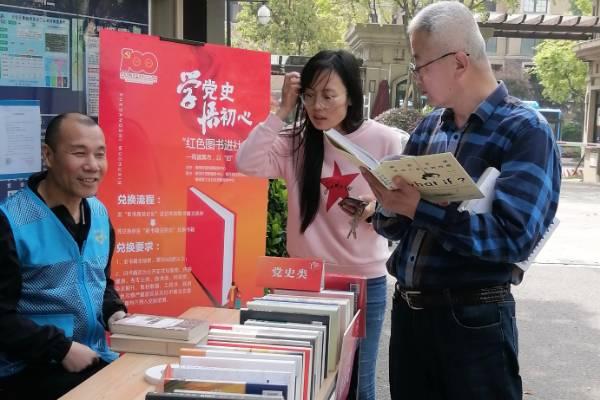在现场,红色书籍兑换摊位人潮拥挤,其中一位青年党员带来自己的《中国共产党简史》与一位退休党员的《星火燎原》进行书籍交换,红色经典书籍重读,更好地让党员从中汲取精神动力,传承红色基因,补精神之“钙”。