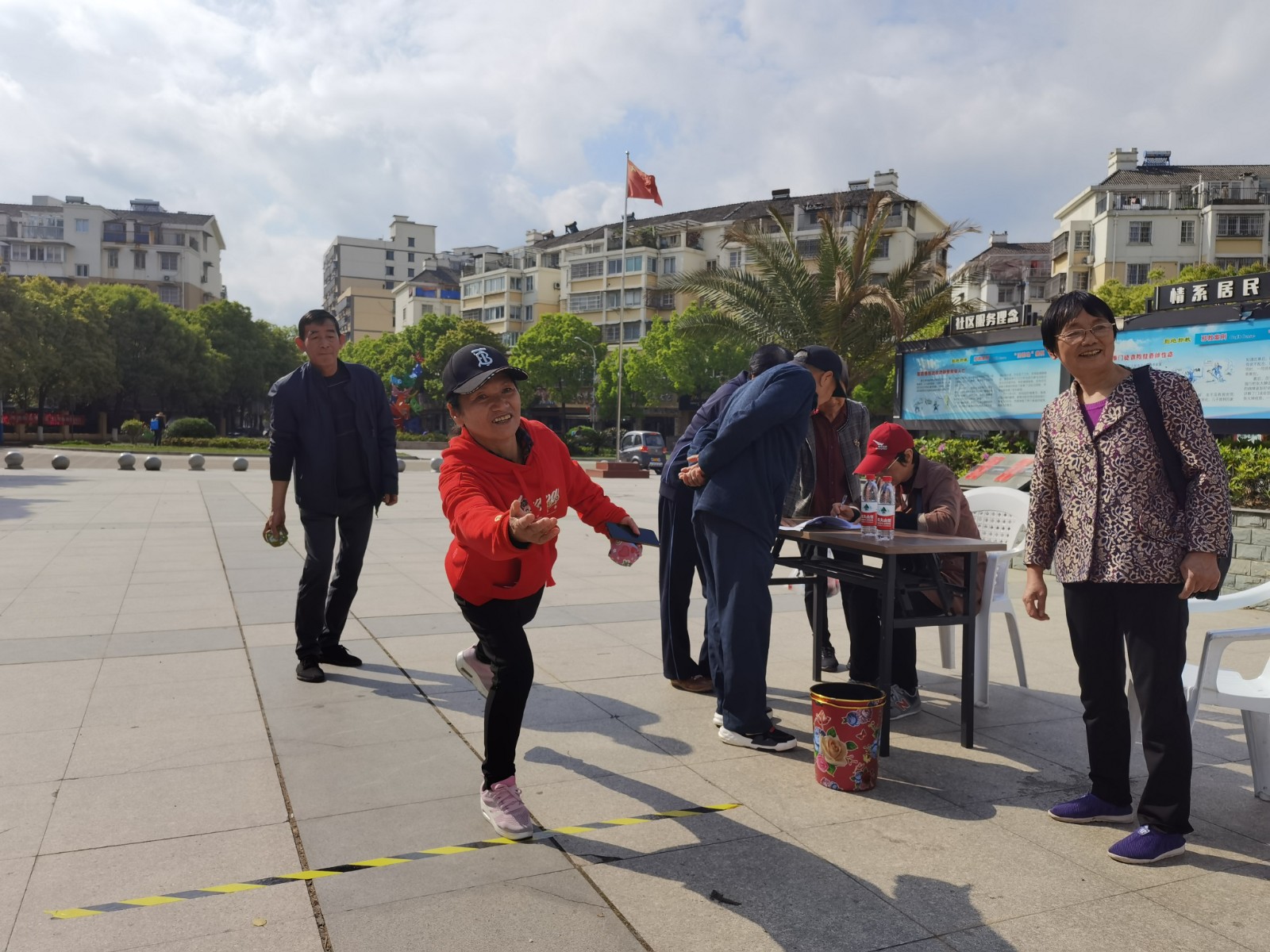 清晨7点不到,队员们早早来到高河塘社区广场集合,在领队的带领下熟悉场地并进行热身。本次比赛共有沙包掷准、乒乓球对墙、仿保龄球、篮球投篮、投环等5个项目,分男女组分别进行,青墩社区共派出10名队员参加了本次比赛。