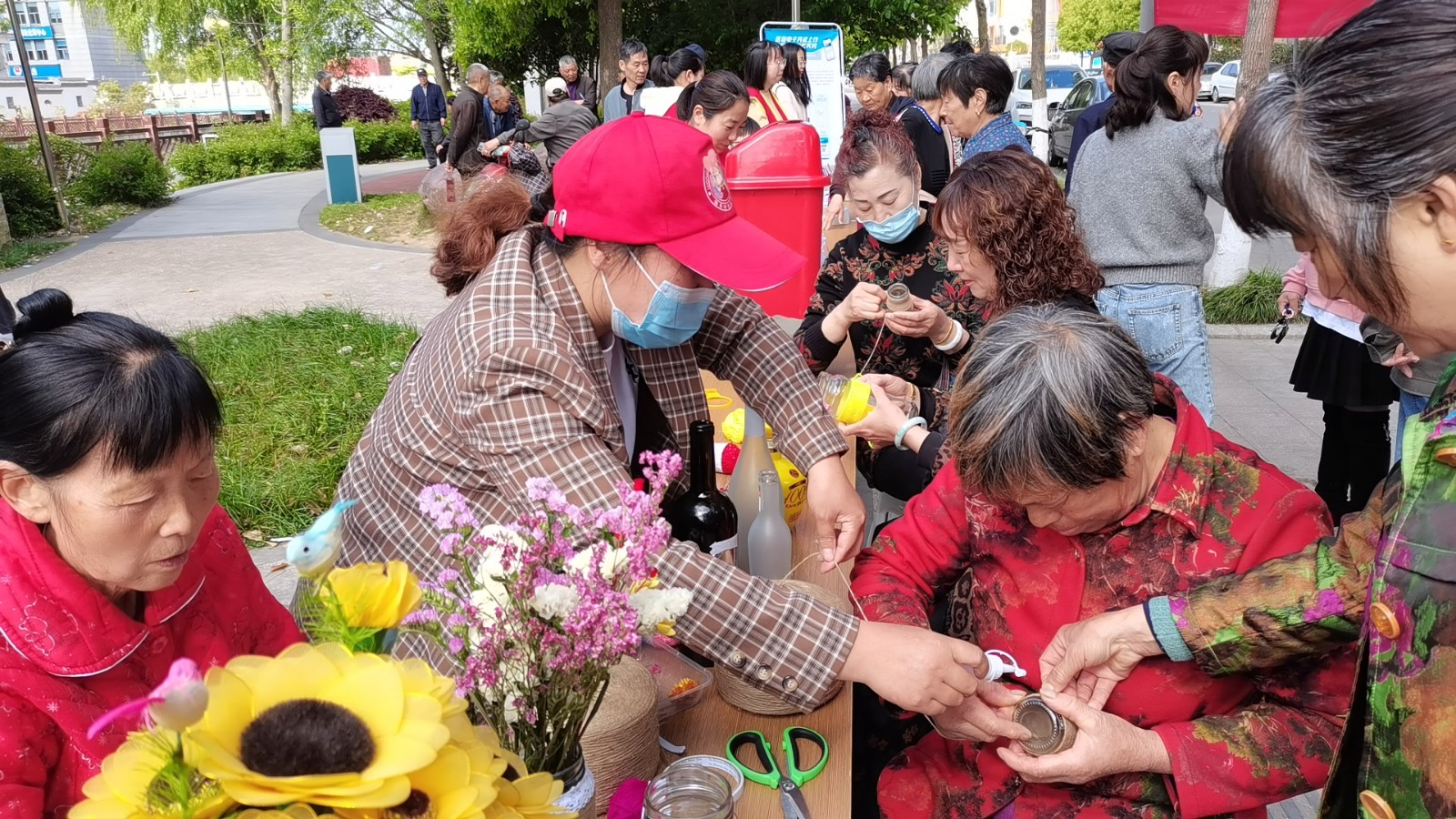 为呼应今年世界地球日“珍爱地球 人与自然和谐共生”的主题,今天上午,盛家社区组织开展了“珍爱美丽地球,守护自然资源”活动,开设变废为宝展示区和变废为宝DIY区。居民们巧用各种废旧塑料盒、玻璃瓶变废为宝,制作出精美的手工艺品,实现资源循环利用。呼吁居民保护环境、珍爱地球、从我做起,引导居民树立生态文明理念,建立正确的自然资源观。此外,盛家社区组织开展了“学党史 促文明 办实事” 红色公益集市活动,现场设有反诈骗宣传、党史宣传、垃圾分类管理条例宣传、有害垃圾兑换、疫苗建档登记、理发、量血压、磨剪刀、电子医保卡激活等众多摊位,各项服务受到广大居民欢迎。