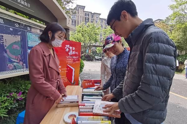 载着“红色书籍”流动图书车驶进北仑区春晓街道各社区