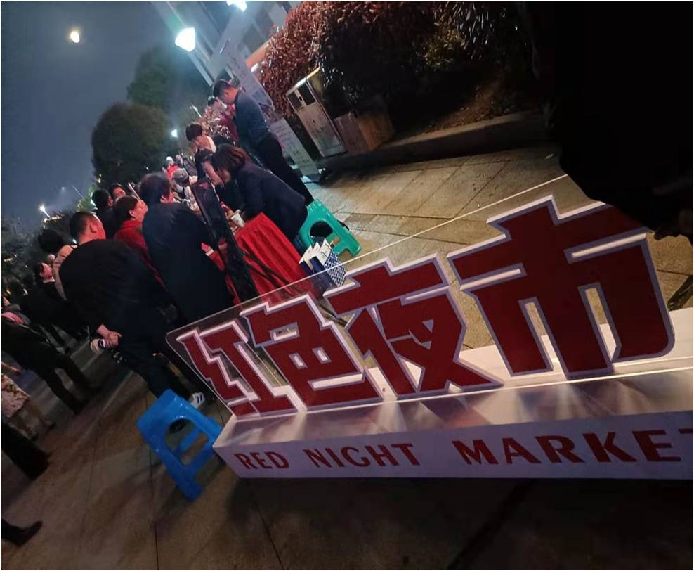 为庆祝建党100周年,宁沁社区组织开展追寻“洪”色印记之红色夜市活动。