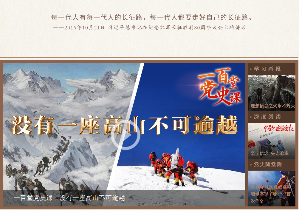 珠峰高程测量最终登顶成功靠的是什么?就像革命先烈们爬雪山过草地一样,靠的正是共产党员坚定信念、勇往直前的精神。面向未来,我们坚信共产主义远大理想,必将指引我们越过一座座高峰,创造更加显赫、美好的未来。
