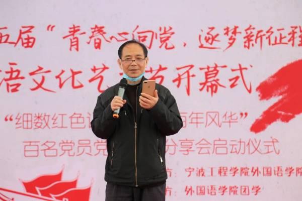 2021年4月28日下午,来自江北区甬江街道梅堰社区党支部党员汤世方老先生走进宁波工程学院外国语学院开启了一场红色宣讲。