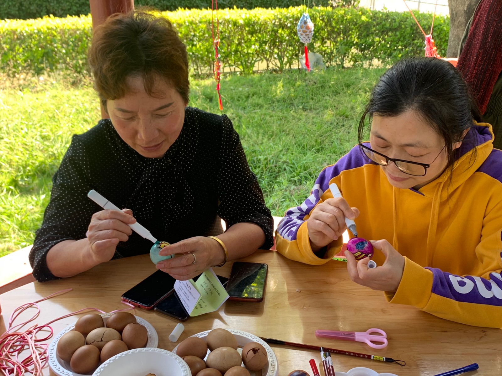 讲述百年党史。参与者发挥自己的才艺在鸡蛋上彩绘表达对建党100周年的心意。活动结束后社工将茶叶蛋和单套以及建党百年系列丛书送到高龄党员家。