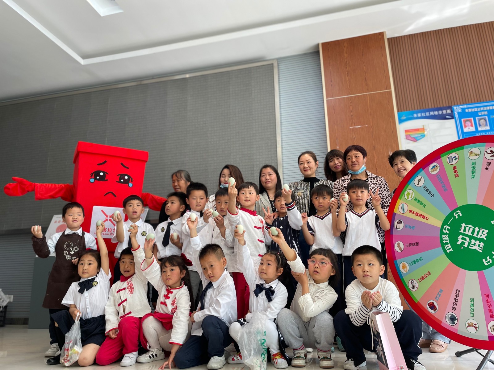 “请各位家长带着小朋友们排好队伍,跟着害害到达我们打卡第一站,有害换有爱”红色有害垃圾玩偶“害害”带领16对亲子组合步入朱家社区大厅,开启一场立夏趣玩之旅。这是朱家社区为营造传统节日的氛围,播下新时代文明火种,为幼儿园小朋友们量身定制的垃圾分类亲子“立夏”专题民俗体验游园会。