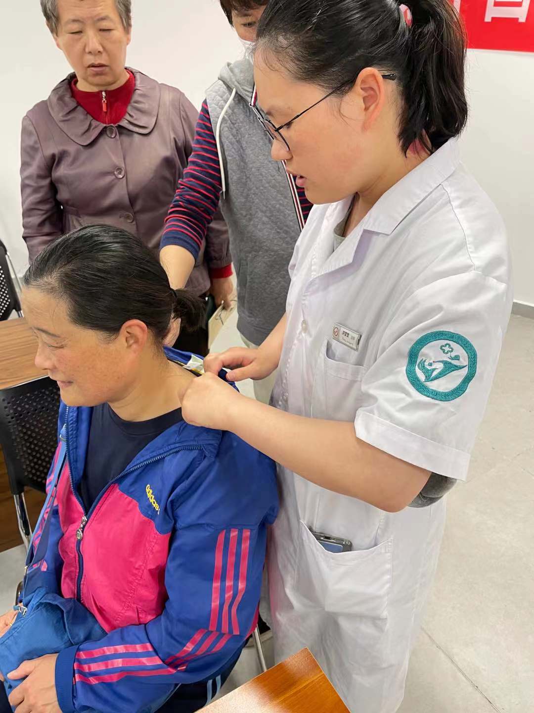 讲座最后,洪医生还邀请想体验刮痧的老人们,亲自动手为他们刮痧,如:风池穴、肩井穴、大椎穴等,第一个体验的吴阿姨赞不绝口,还询问了一些关于在家中自我预防颈椎病的方式,洪医生嘱咐大家在平时生活中一定要多抬头、动作慢,才能更好的预防颈椎病,老人们都表示获益匪浅。