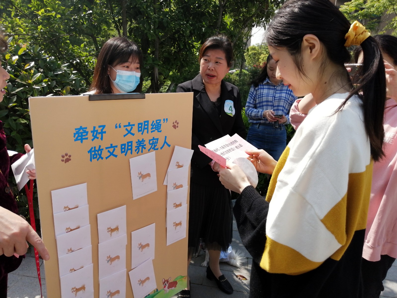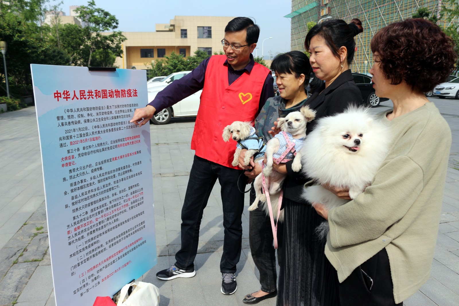 5月1日起,新《中华人民共和国动物防疫法》将施行,届时,遛狗不拴绳或不佩戴犬牌,将涉嫌违法。4月29日上午,长山社区党群服务中心举办了一场特殊的文明宣传活动,以寓教于乐的方式,向犬主宣传新修订的《动物防疫法》,倡导居民文明养犬、依法养犬,争做文明“萌”主。