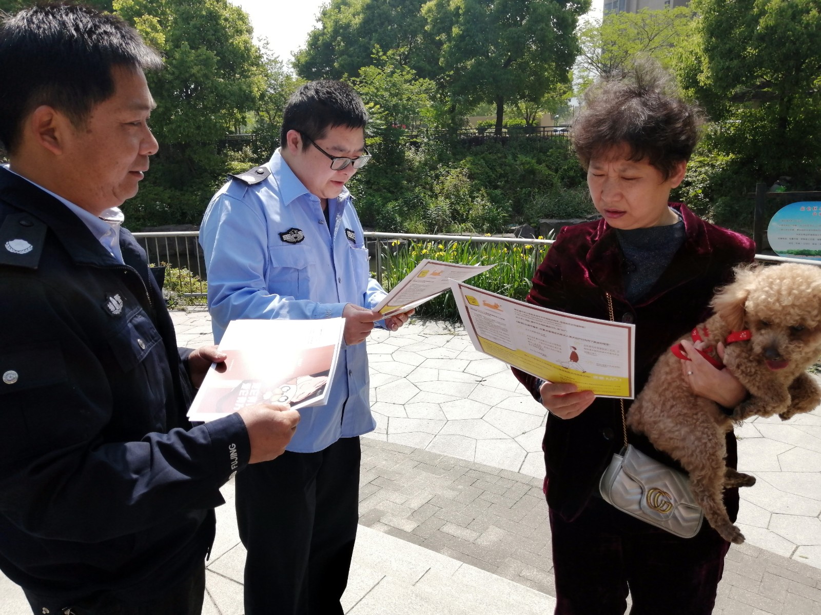 “家有宠物乐淘淘,养好犬儿责任到;办证登记不可少,不忘定期打疫苗;通过按时按区域,出门戴上细绳套;户外便溺清理掉,公共场所不打扰;善待尽责树文明,做个文明养犬人。”社区成立“点点爱宠俱乐部”,组建“爱宠之家”文明倡导队,在辖区主要出入口巡逻劝导,向犬主宣传文明养犬相关法律法规。“王阿姨,你带家的多多出门别忘了给它戴上绳套,5月1日起,遛狗不拴绳将涉嫌违法。”社区“爱宠之家”文明倡导队的队员们宣讲相关知识,增强宠物主人的文明意识,通过引导、志愿巡逻、温馨提示等多种方式,巩固居民文明养宠意识。