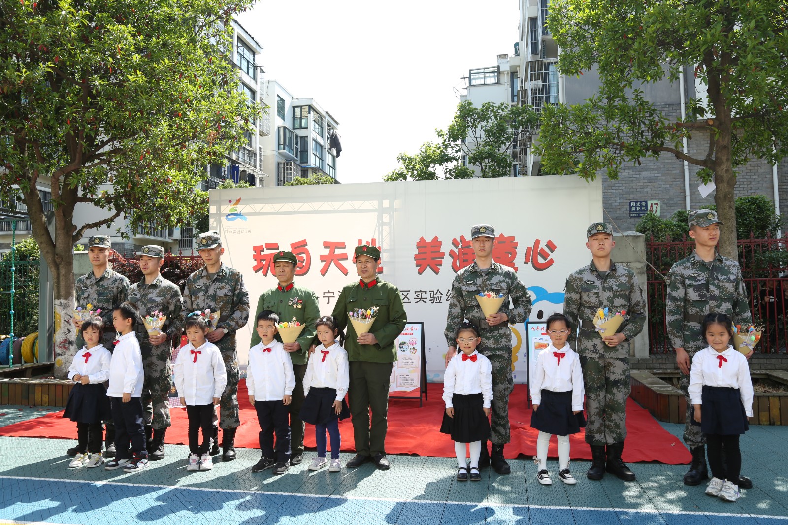 伴随着《义勇军进行曲》,鲜艳的五星红旗冉冉升起,也拉开了江北实验幼儿园红色阅读节的序幕。现场,几位现役军人不仅为小朋友们带来列队、立正、正步走等表演,还讲解了敬礼的分解动作,孩子们也争相举起了小手学着军人敬礼。两位身穿军装的退伍老兵葛金强和俞海良,给孩子们讲述起他们的从军经历。台下,一张张稚嫩的小脸听得十分认真,虽然孩子们对那一段令人震撼的红色历程还有些懵懂,但他们对老兵爷爷艰苦奋斗、坚持不懈的精神敬佩不已。随后,孩子们为在场的现役军人、退伍老兵们,献上了自己亲手制作的手捧花。
