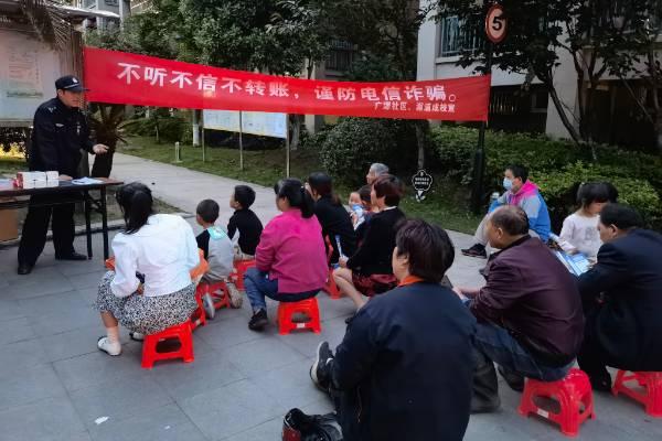 趁居民晚上吃完饭在小区绿地休息时间,社区工作人员向居民发放宣传单,告知居民电信诈骗案的发案特点、方式以及如何识别应对,提醒居民“不轻信、不汇款”。辖区民警周江铭以“小板凳会议”方式耐心细致地向居民解答各种电信诈骗问题,提醒广大居民群众不轻信任何网络电话,不透露个人信息、不转账、不点不明链接,遇到可疑情况及时拨打报警电话,谨防受骗。