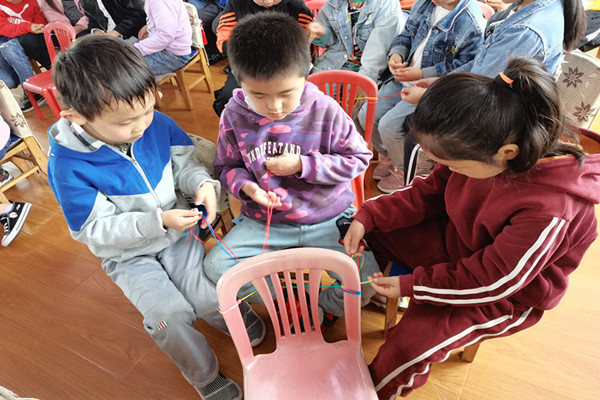 五彩的丝绳编织成的蛋套是立夏节的标志,孩子们在“五老”志愿者老师的指导下,为丝绳带来了一场华丽的大变身,经过搭色、缠绕后,编织了造型各异、漂亮精致的的蛋套。孩子们将蛋装进蛋套中,挂在脖子上为其消灾祈福,消暑怯病。俗话说“吃了立夏蛋,力气大一万”,孩子们在经过一番斗蛋后,吃着自己拼过的蛋,“品”着立夏的滋味。
