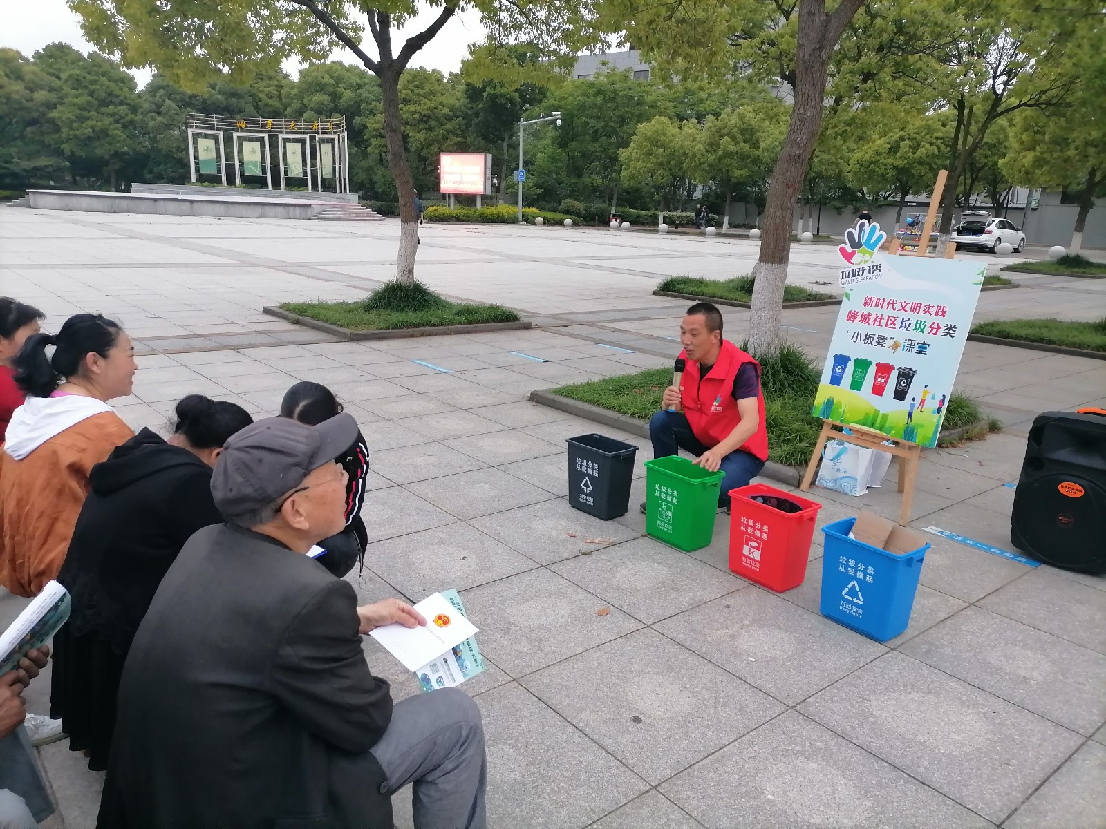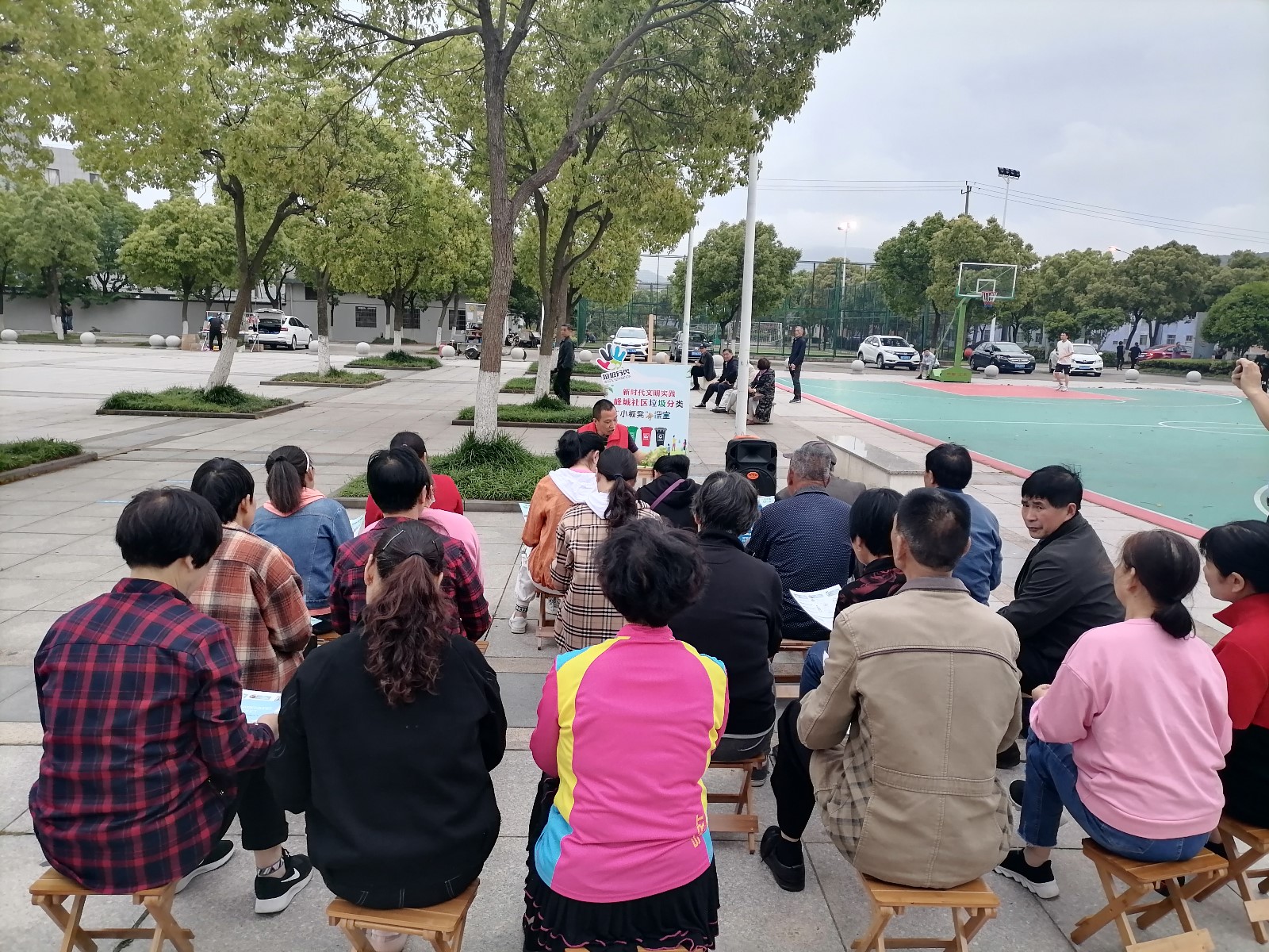在青少年宫广场,居民群众团团围坐,环卫站副站长金磊向在坐居民讲解今年5月1日起开始实施的《浙江省生活垃圾管理条例》,普及垃圾分类知识,倡导大家从日常生活入手,从小事做起,争当垃圾分类的倡导者、参与者,有效的处理生活垃圾。
