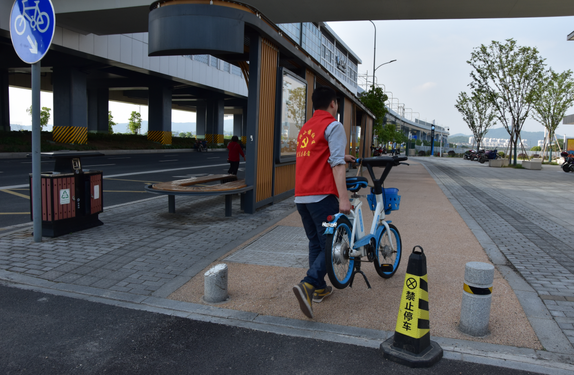 为大力弘扬志愿服务精神,进一步优化城社区环境,营造文明共建共享的良好氛围,助力和谐社区创建再升级。5月7日下午,维拉小镇社区党支部携手句章老兵慈尚军嫂志愿服务队来到4号线官山河站开展以“共享单车  共享文明”为主题的共享单车摆放整理志愿活动,通过帮助游客买票、引导电瓶车规范停放、教导使用共享单车,为和美江北贡献自己的服务力量。