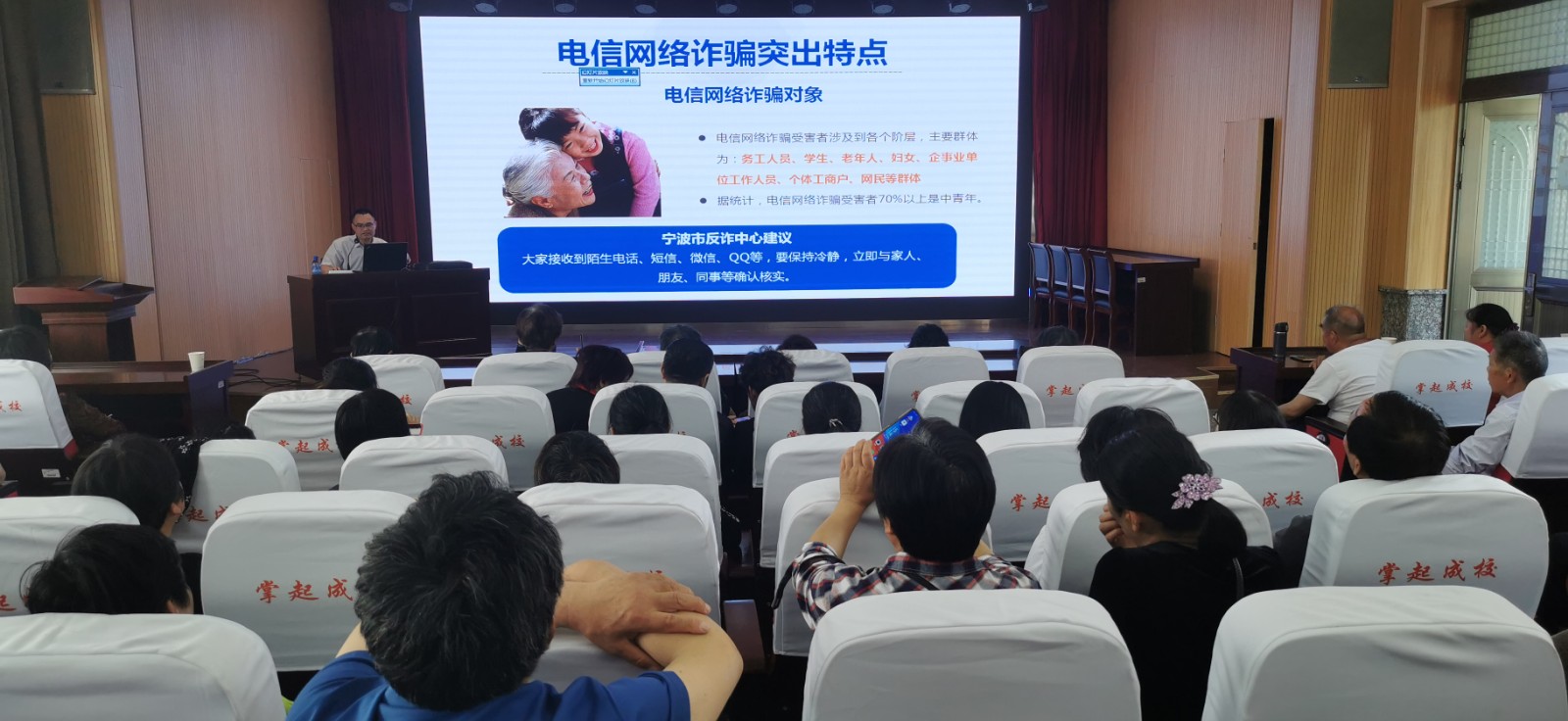 据统计,自5月1至5月5日,慈溪市共发电信网络诈骗案件83起,损失金额352.56万元。为了进一步加强老年人的防范意识,我镇社区老年大学特开展此次讲座,为老人分析了当前电信诈骗的常见手段以及防诈骗方法,并对发生在我镇的诈骗案件展开了详细讲解。