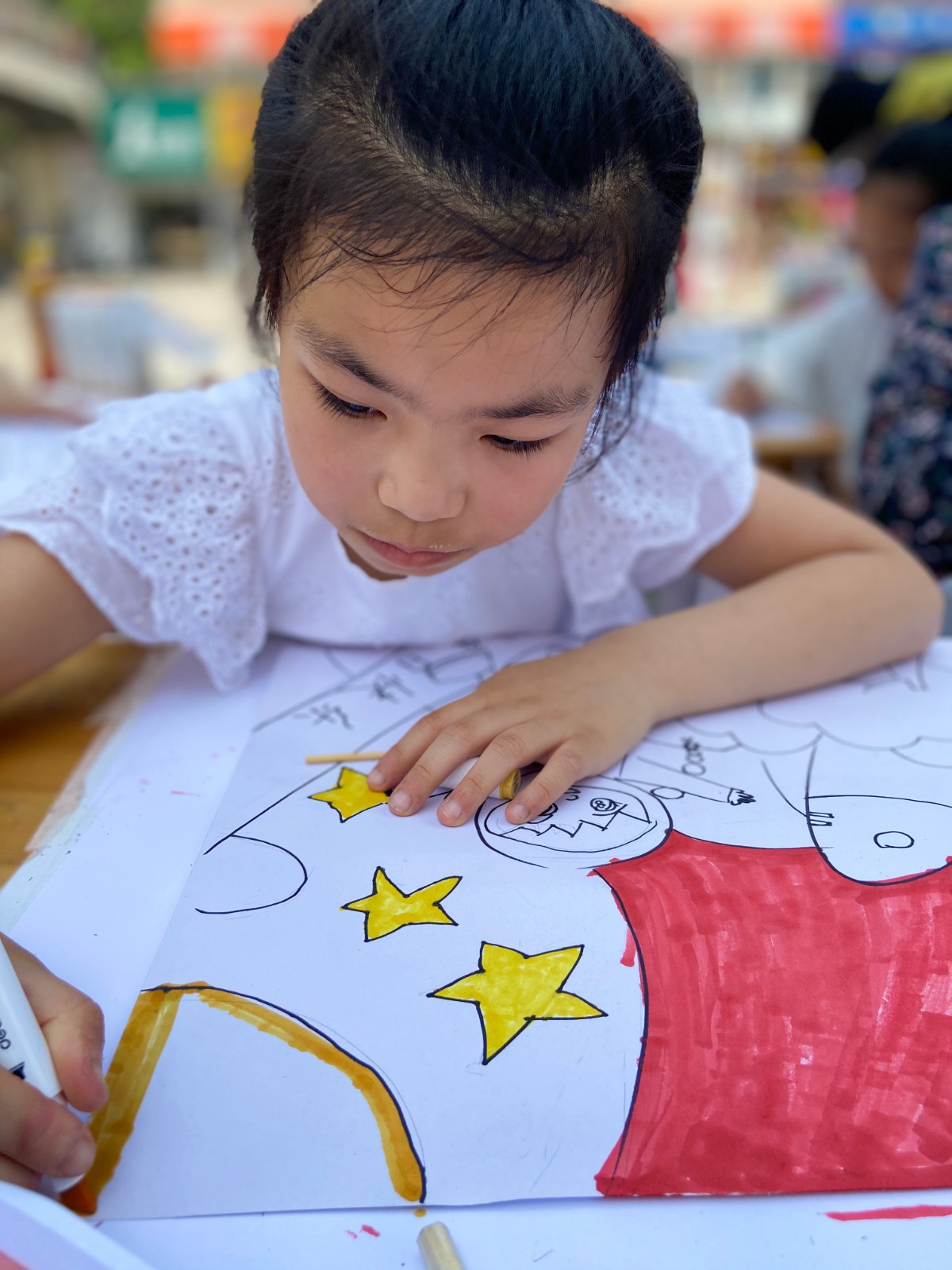 5月9日上午,东信路社区联合辖区店铺糖宝艺术培训开展长卷绘画活动,在以“童心向党艺百年,接力绘画展未来”为主题的长长画卷上,孩子们用稚嫩而灵巧的小手画下一幅幅热爱祖国的画面。一张张灿烂的笑脸,一笔笔流动的色彩,值此母亲节之际,孩子们用自己独特的方式表达了对祖国母亲的热爱。