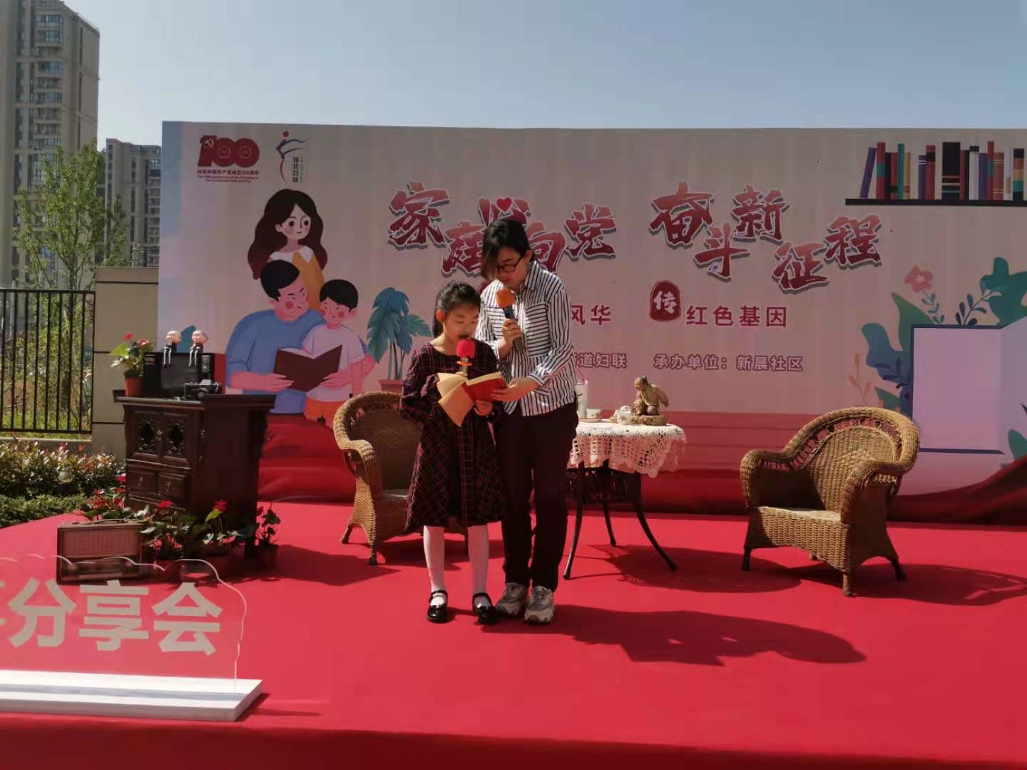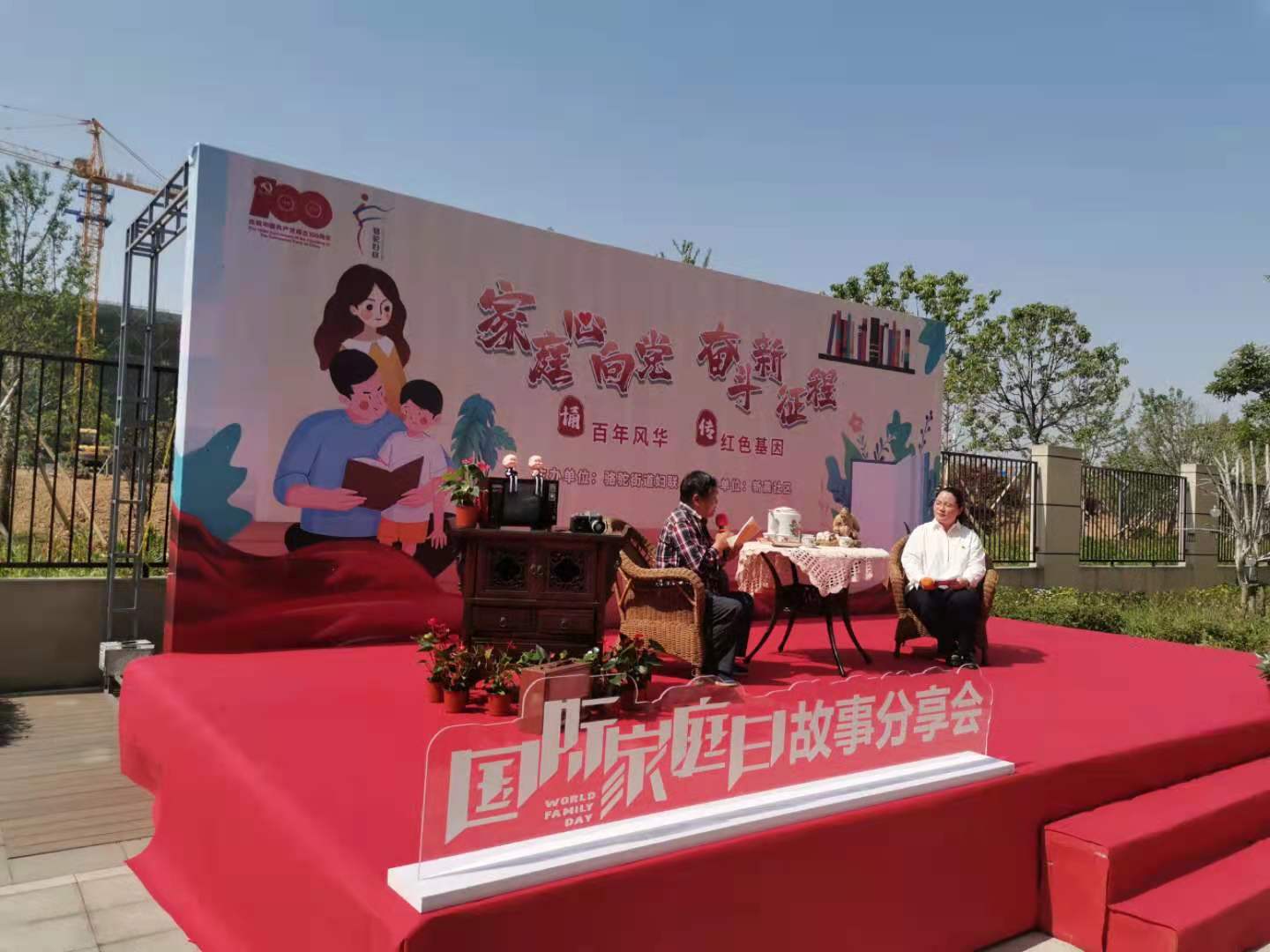 5月9日上午,在5.15国际家庭日来临之际,骆驼街道妇联、关工委携手新晨社区在充满温馨大家庭氛围的庭院里,举行以“家庭心向党,奋斗新征程——诵百年风华,传红色基因”为主题的家庭故事分享会。特别邀请了书香家庭、绿色家庭、爱心家庭、红色家庭、警察家庭以及道德模范、全国劳模等典型家庭代表上台分享感人故事,同时邀请了30多户亲子家庭亲临现场聆听。