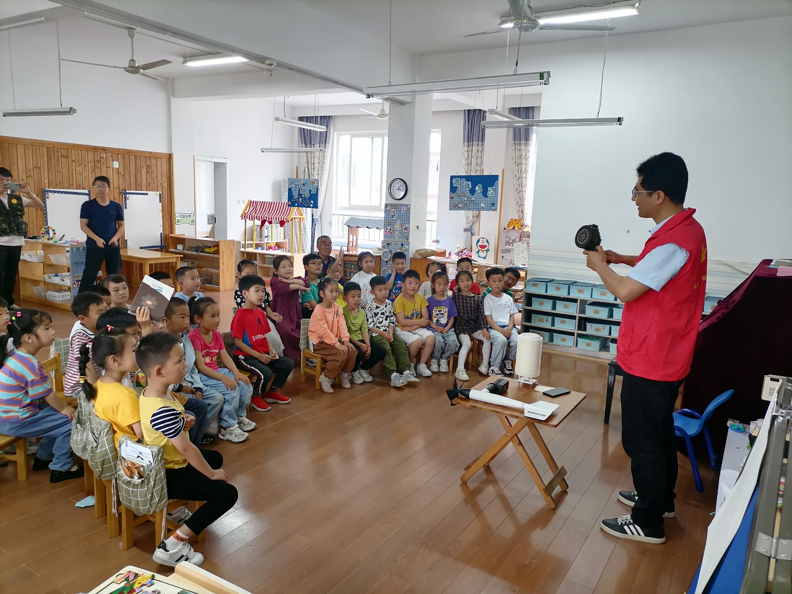 针对幼儿园小朋友注意力不集中、理解能力弱的特点,社区工作人员结合精彩的地震小故事,展示分速风向仪、小百叶箱、手摇报警器等器材,通过“现场互动”的方式,为小朋友们讲解了地震发生时如何避震、逃生知识。
