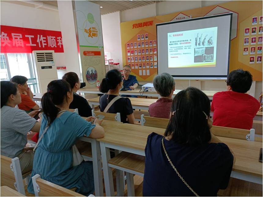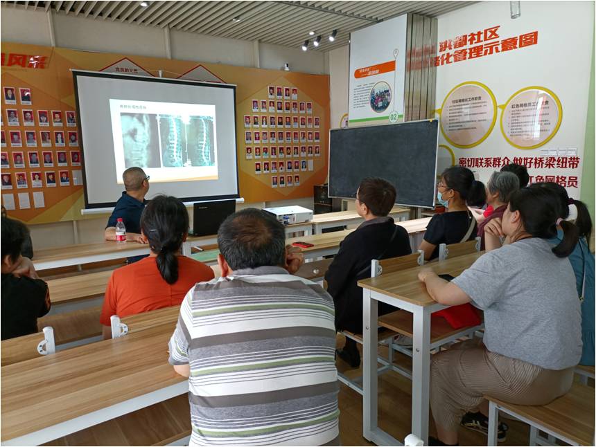 为了增强社区居民健康保健意识及健康生活方式行为能力,提高生活质量和身体素质,提倡科学文明健康的生活方式和行为。5月12日,洪塘街道洪都社区邀请江北区第九医院脊柱外科陈晓杰副主任医师,组织辖区居民开展了一场《预防腰腿疼痛》健康教育讲座。