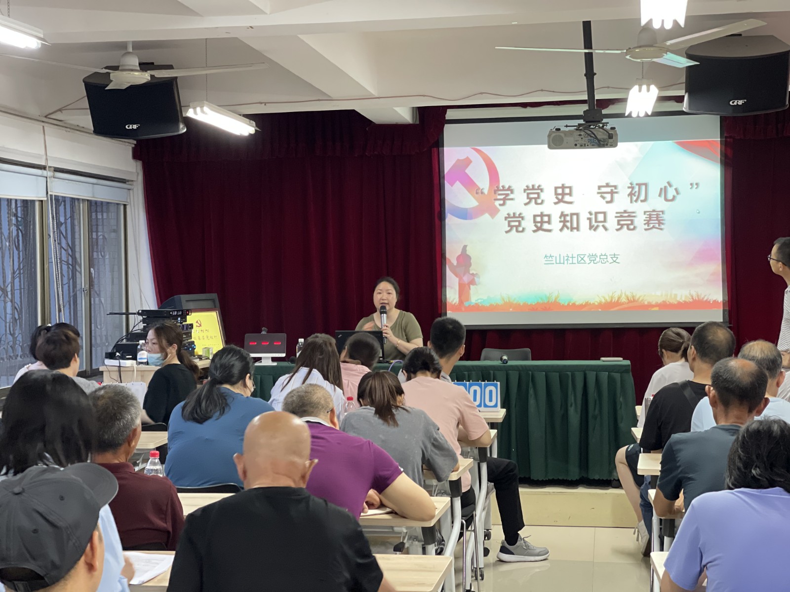 为庆祝中国共产党成立100周年,进一步引导广大党员干部深入学习党的历史,增强党性观念,提升党性修养,5月15日晚上,竺山社区党群服务中心二楼会议室举行了“学党史 守初心”党史知识竞赛。